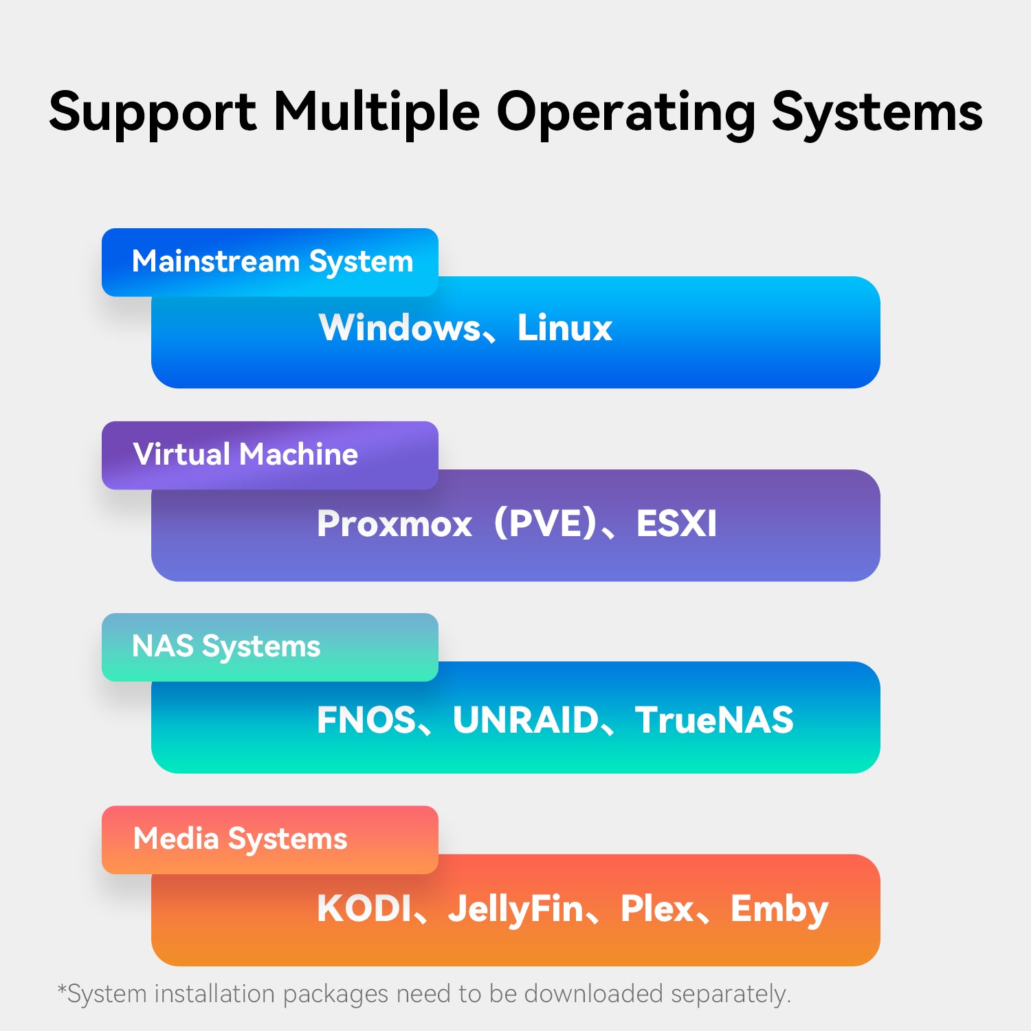Es wird empfohlen, leichtgewichtige Systeme (NAS, Soft-Router) auf eMMC zu installieren, um SSD-Speicher zu sparen. Für eine optimale Leistung verwenden Sie für die Systeminstallation die SSD in Steckplatz Nr. 4.