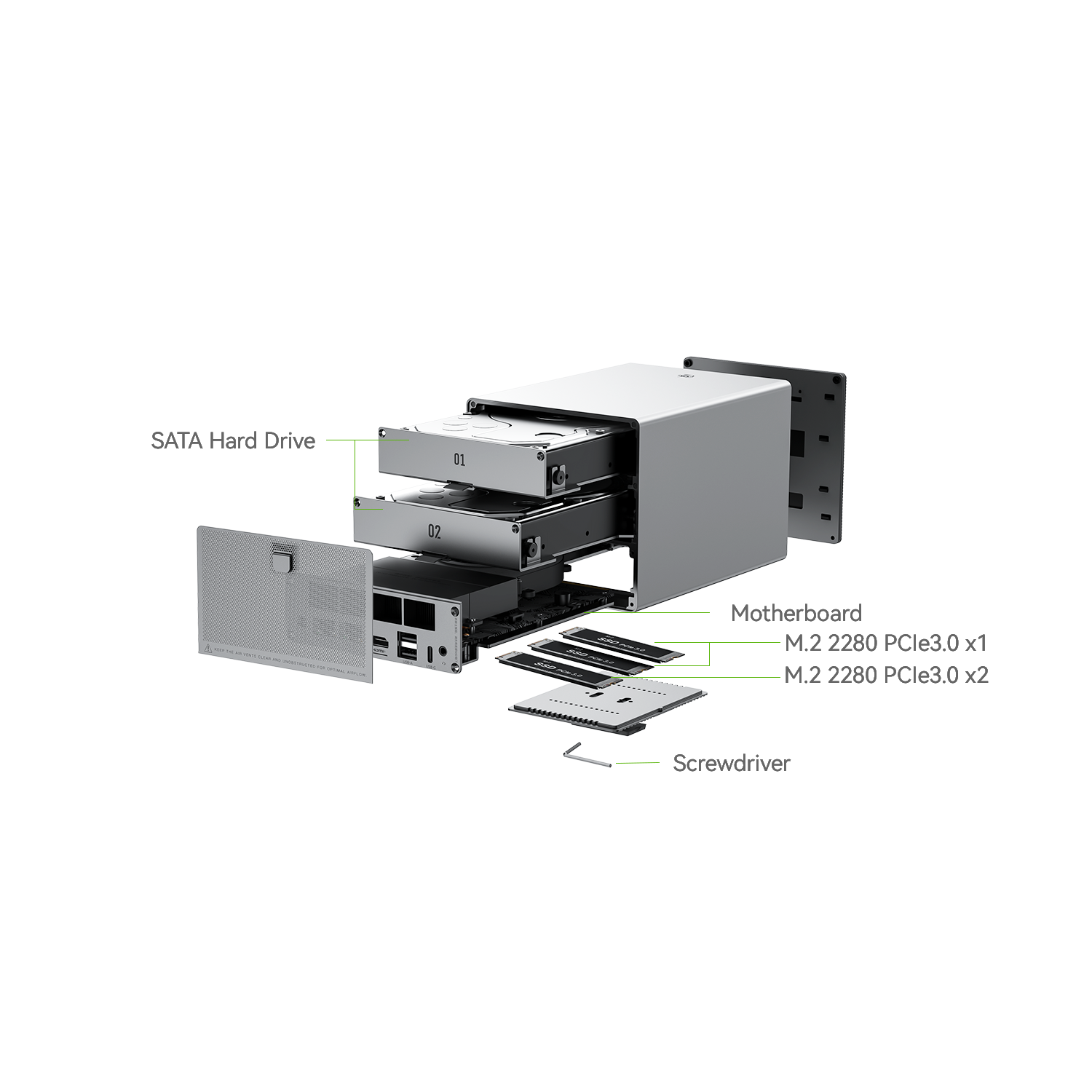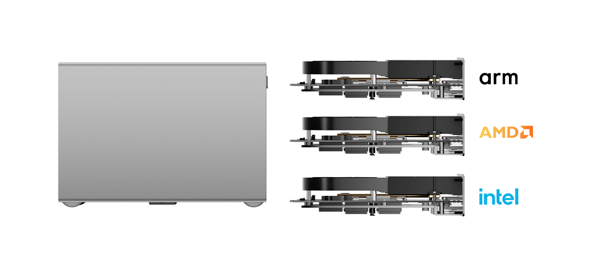 Las versiones tradicionales bloquean la placa base en el chasis sin espacio para actualizaciones, lo que hace que las actualizaciones de hardware sean complicadas o imposibles, mientras que el diseño intuitivo del cajón de bricolaje del ME Pro admite una amplia compatibilidad de la placa base (Intel & AMD & arm) para actualizaciones sencillas impulsadas por el usuario.