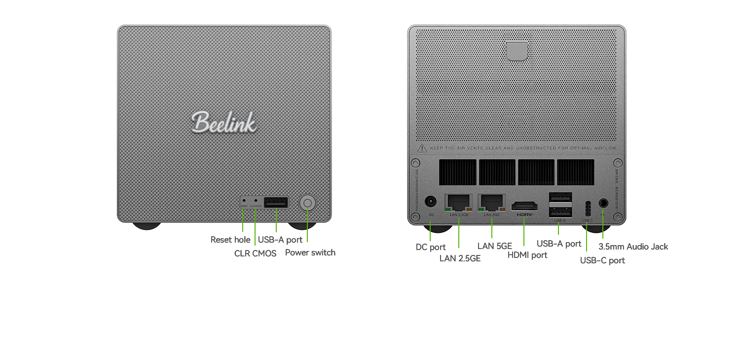 Equipado con puertos de red duales de 2,5 GE y 5 GE, permite transferencias de archivos grandes más fluidas y conexión en red de múltiples dispositivos, lo que lo hace adecuado para escenarios domésticos y de pequeñas oficinas.