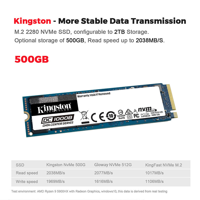 GTR5 uses Kingston M.2 2280 Nvme SSD. After testing by technicians, the SSD read and write speed can reach up to 2038Mb/S, and currently.